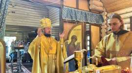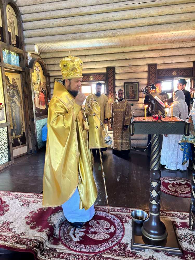 17 июля 2025 года, в день памяти святых страстотерпцев царя Николая, царицы Александры, царевича Алексия, великих княжен Ольги, Татианы, Марии, Анастасии и страстотерпца праведного Евгения врача, Преосвященный Диодор епископ Мелекесский и Чердаклинский совершил Божественную Литургию святителя Иоанна Златоуста в храме Успения Пресвятой Богородицы с. Успенское Старомайнского района на территории базы отдыха "Русский берег".