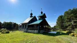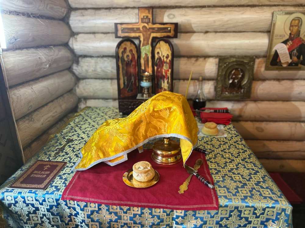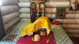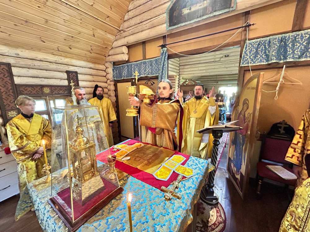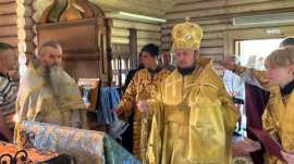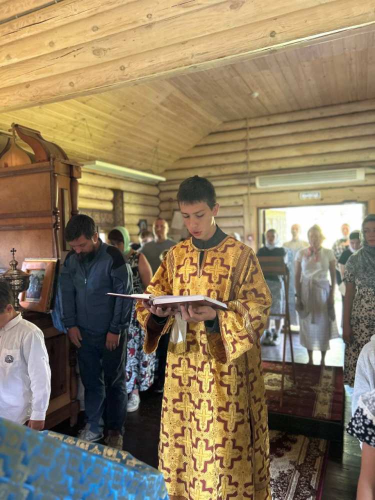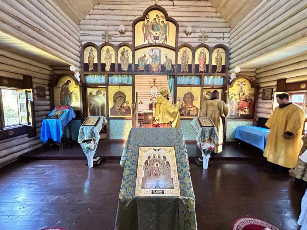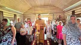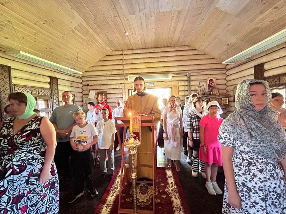Божественная Литургия в храме Успения Пресвятой Богородицы с. Успенское Старомайнского района на территории базы отдыха "Русский берег"