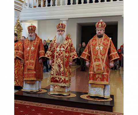 Божественную литургию в Спасо-Вознесенском кафедральном соборе Ульяновска совершили Митрополит Симбирский и Новоспасский Лонгин, Епископ Барышский и Инзенский Филарет, Епископ Мелекесский и Чердаклинский Диодор.