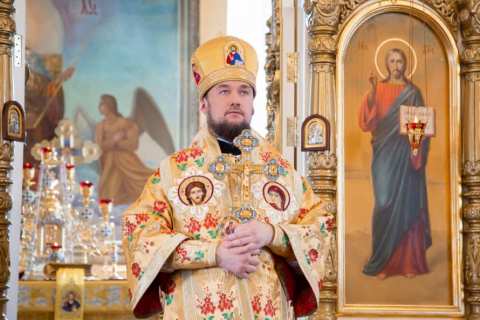 По окончании Литургии было совершено праздничное славление, после чего глава Мелекесской епархии обратился к собравшимся с архипастырским словом.