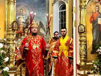 4 апреля 2026 - 7:00вечера В канун праздника Входа Господня в Иерусалим Преосвященный епископ Диодор совершил всенощное бдение и традиционное освящение вербных и пальмовых ветвей (ваий)