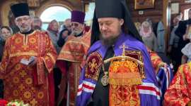Его Преосвященству сослужило духовенство храма.