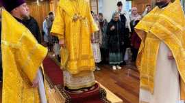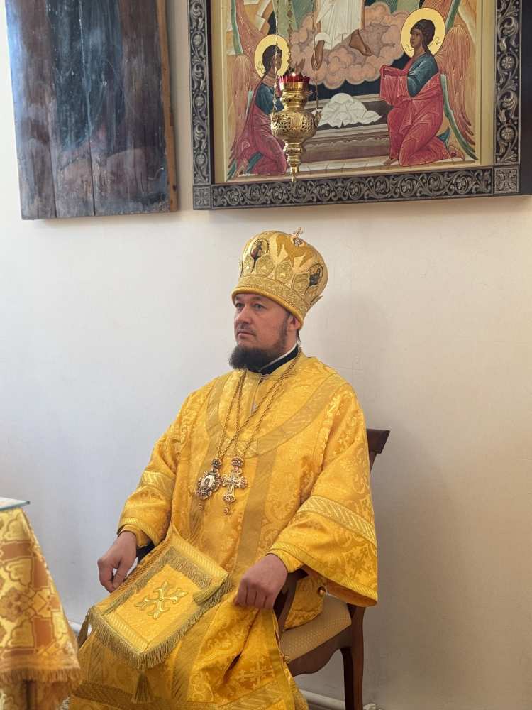 Его Преосвященству сослужило духовенство храма.