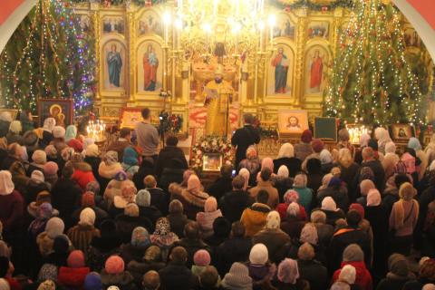 В ночь с 6 на 7 января 2018 года епископ Мелекесский и Чердаклинский Диодор совершил праздничную Божественную литургию в Преображенском кафедральном соборе г. Димитровграда, в которой приняли участие более тысячи человек.