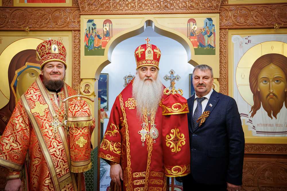 Глава Сенгилеевского района Александр Кудряшов вручил Митрополиту Лонгину и Епископу Диодору благодарственные письма за труды в деле укрепления православной веры в Ульяновской области.