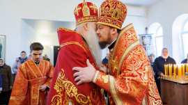 Архипастырям сослужили духовенство Симбирской и Мелекесской епархий.