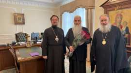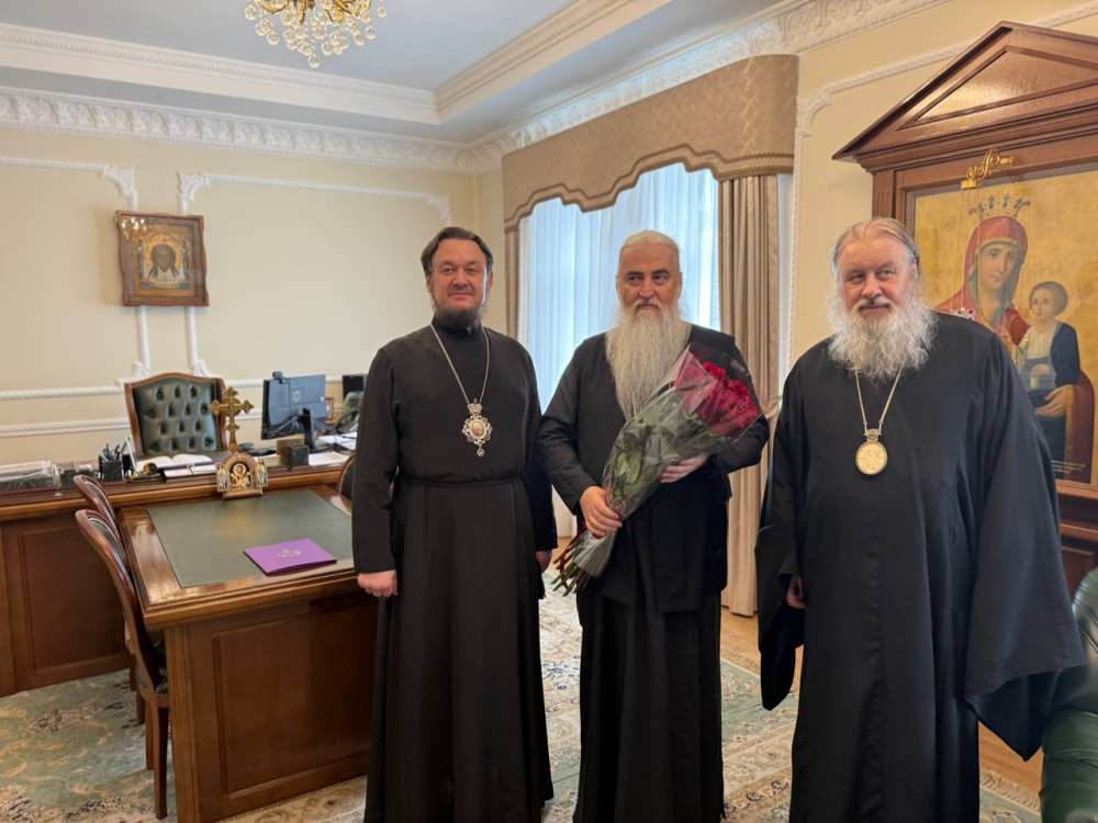 По завершении богослужения в Симбирском епархиальном управлении епископ Филарет и епископ Диодор поздравили митрополита Лонгина с памятной датой – годовщиной архиерейской хиротонии.