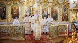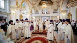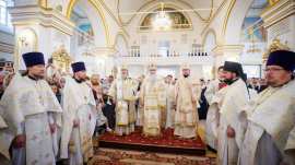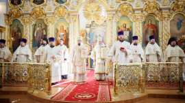 Торжественное соборное архиерейское богослужение в Спасо-Вознесенском кафедральном соборе г. Ульяновска в день архиерейской хиротонии Его Высокопреосвященства митрополита Симбирского и Новоспасского Лонгина