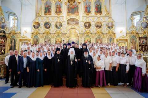 Владыка митрополит поприветствовал и поздравил участников хоровых коллективов, отметив, что все они показали достаточно высокий уровень и поют грамотно, чисто, профессионально.