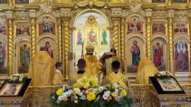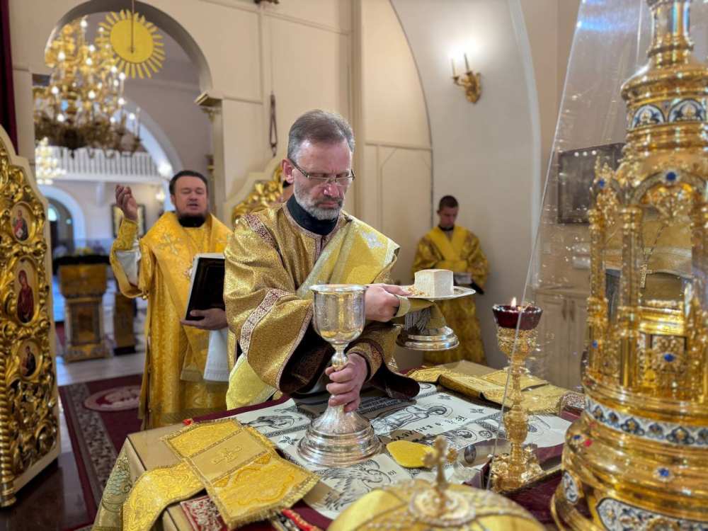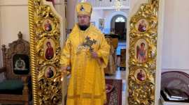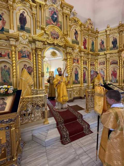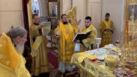Его Преосвященству сослужило духовенство собора.