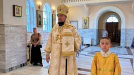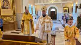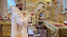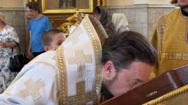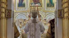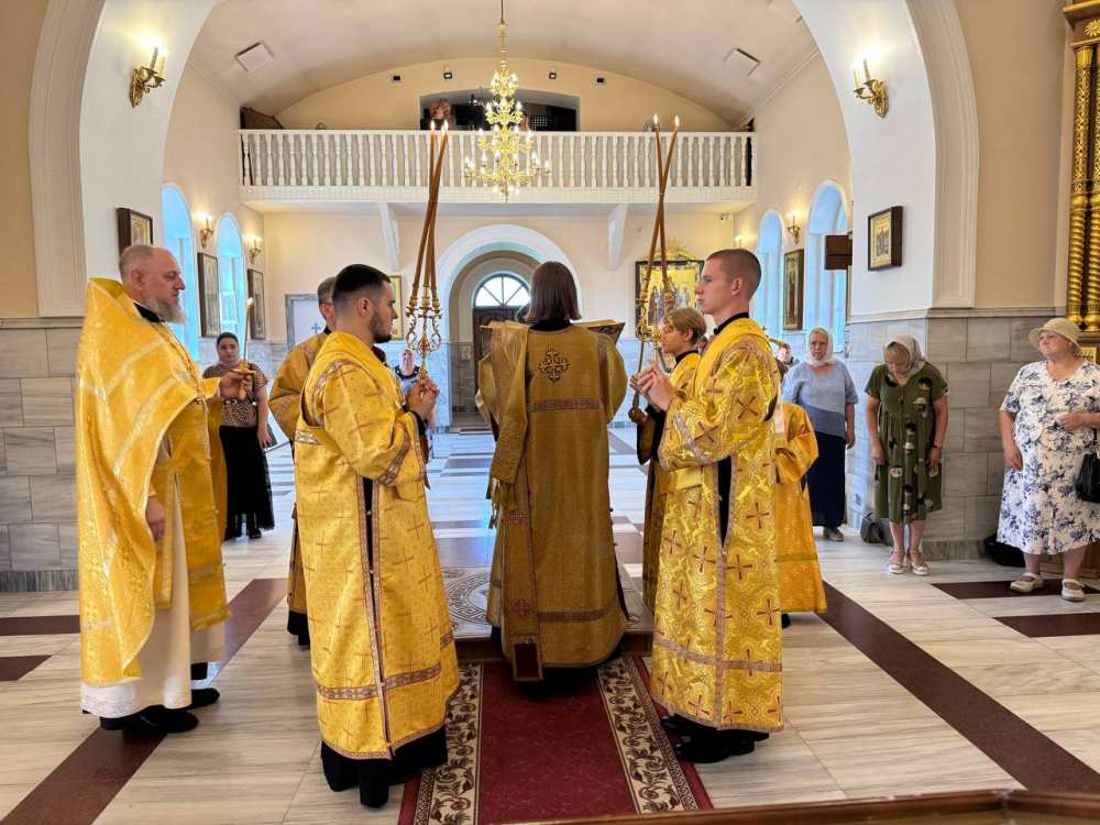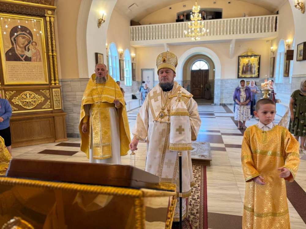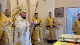 Его Преосвященству сослужило духовенство собора.