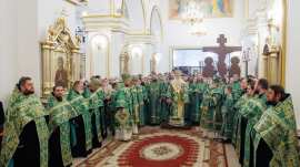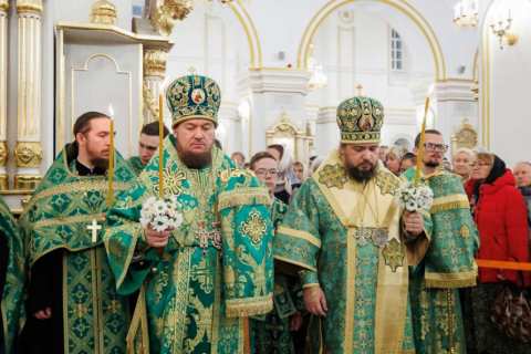 В канун дня памяти святого блаженного Андрея, Христа ради юродивого, Симбирского чудотворца, Преосвященный епископ Диодор принял участие в торжественном соборном архиерейском всенощном бдении