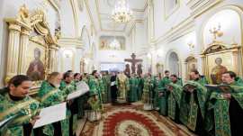 Богослужебные песнопения исполнил Смешанный хор Спасо-Вознесенского собора г. Ульяновска под управлением регента Романа Хитёва.