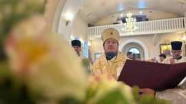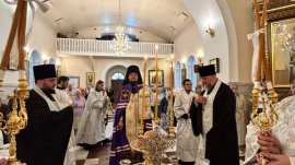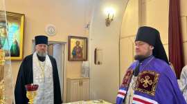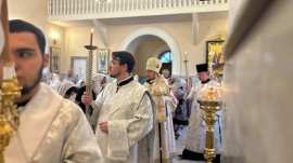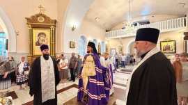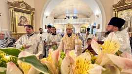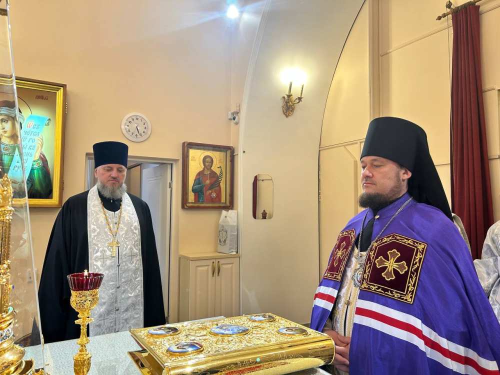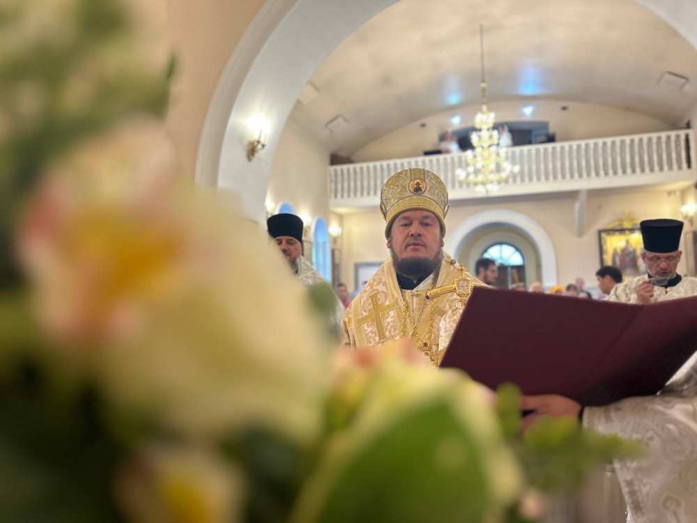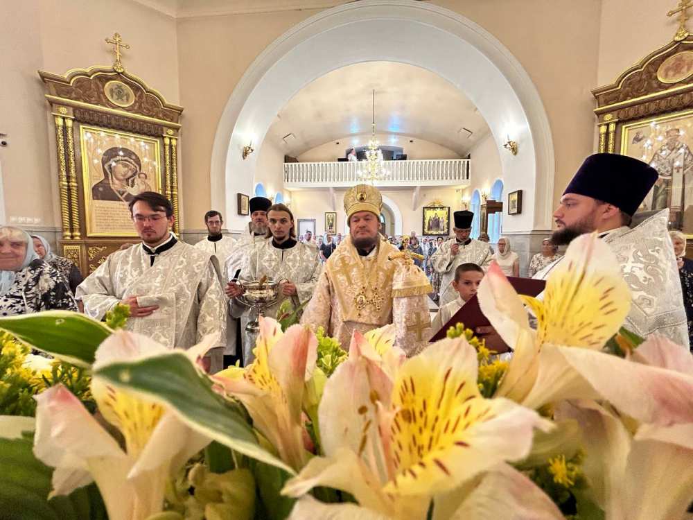 Его Преосвященству сослужило духовенство собора.