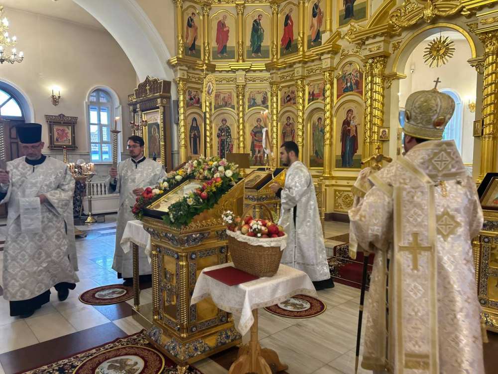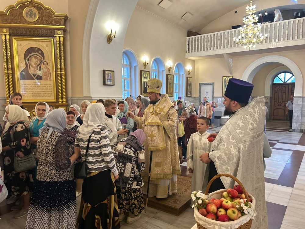 По традиции праздника Преображения Господня Его Преосвященство совершил освящение плодов нового урожая.