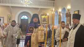 Вечером 18 августа 2025 года, в канун праздника Преображения Господа Бога и Спаса нашего Иисуса Христа, Преосвященный Диодор епископ Мелекесский и Чердаклинский совершил всенощное бдение в Спасо-Преображенском кафедральном соборе г. Димитровграда.