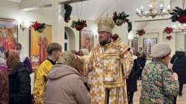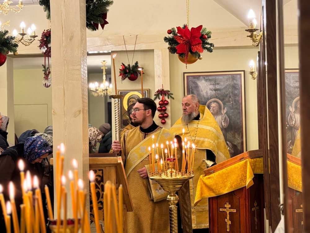 Вечером, 18 декабря 2025 года, в канун празднования дня святителя Николая, архиепископа Мир Ликийских и чудотворца, Преосвященный Диодор епископ Мелекесский и Чердаклинский совершил всенощное бдение в храме Казанской иконы Божией Матери г. Димитровграда.
