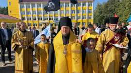 Далее Преосвященный Владыка возглавил крестный ход с ректоратом, преподавателями и студентами до храма прп. Сергия Радонежского при Ульяновского государственного аграрного университета имени П. А. Столыпина. Все молились Царице Небесной, испрашивая Ее заступничества за наше Отечество; о Победе Русского оружия, о наших героических воинах-освободителях, сражающихся сейчас с врагом в зоне специальной военной операции, молились мчч. Фролу и Лавру - покровителям людей, ухаживающими за животными, молились прп. Сергию Радонежскому — покровителю учеников и студентов и о личных житейских обстоятельствах.