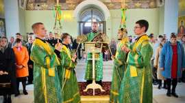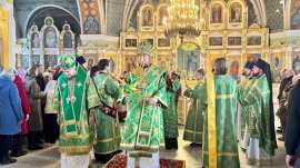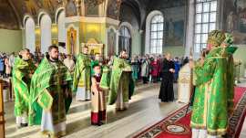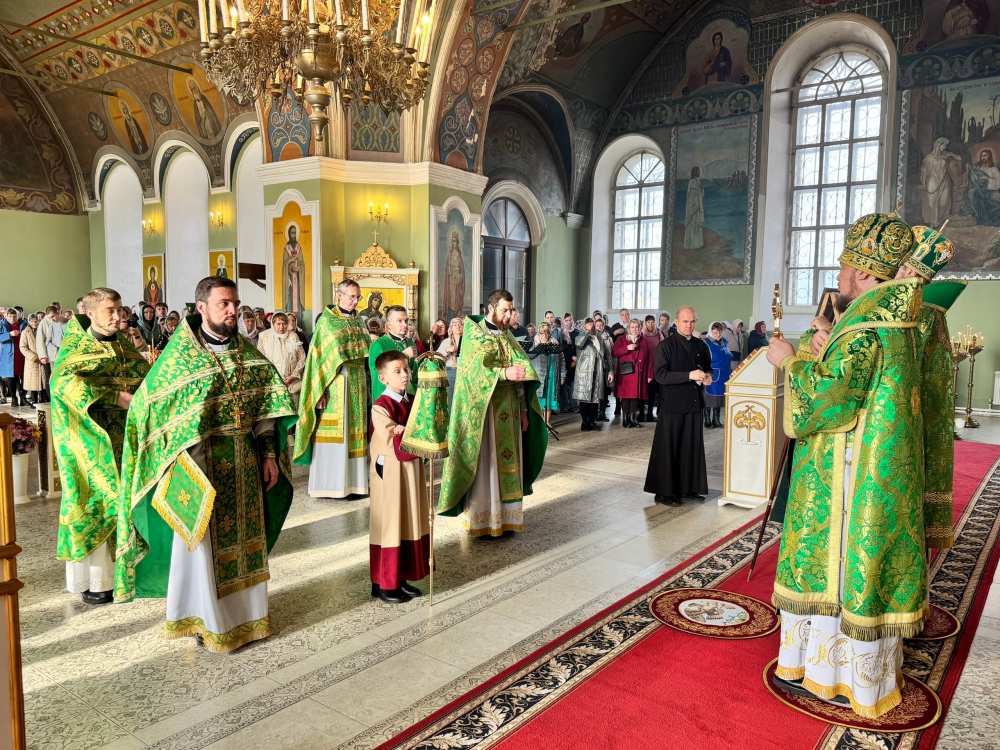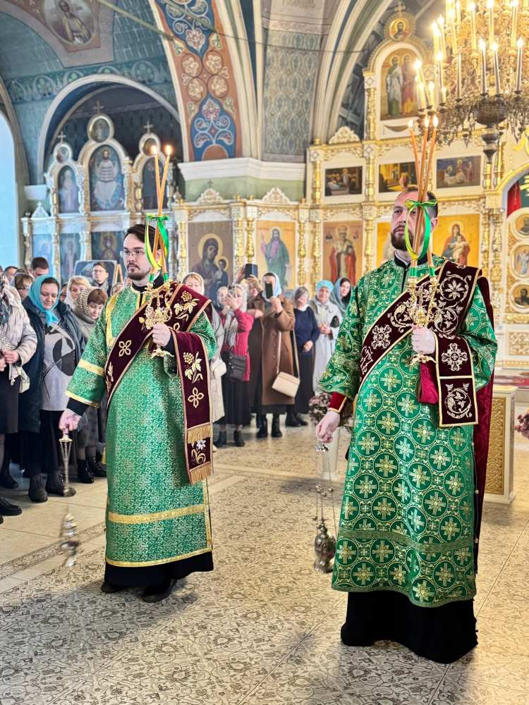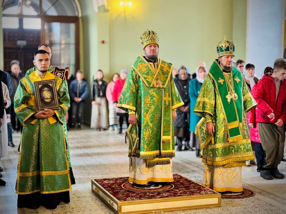 За Литургией Его Преосвященству сослужил Его Преосвященство Климент епископ Краснослободский и Темниковский, секретарь Епархиального управления иеромонах Прокл (Бойко), благочинные, руководители епархиальных отделов и служб Мелекесской епархии, духовенство епархии.