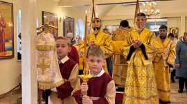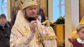 Его Преосвященству сослужило духовенство собора.