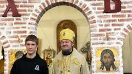 По заамвонной молитве Владыка Диодор совершил славление перед мощами святых преподобноисповедника Гавриила архимандрита Мелекесского и блаженного Андрея Симбирского.
