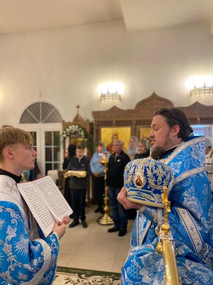 По заамвонной молитве Владыка Диодор совершил славление празднику Введения во храм Пресвятой Богородицы и освятил написанные новые образы святых для установки в храме.