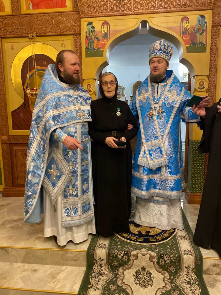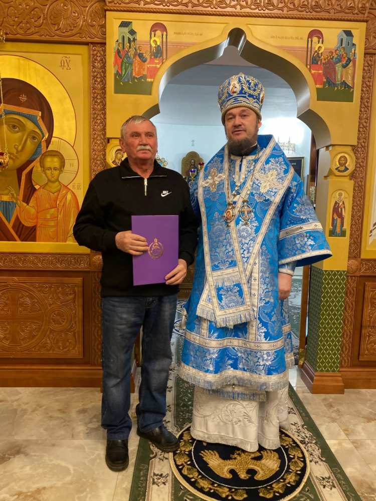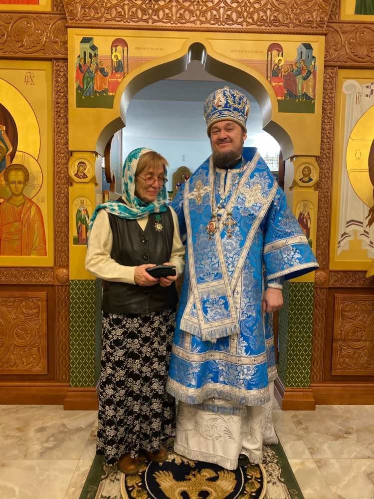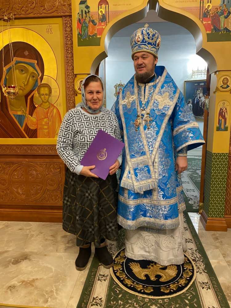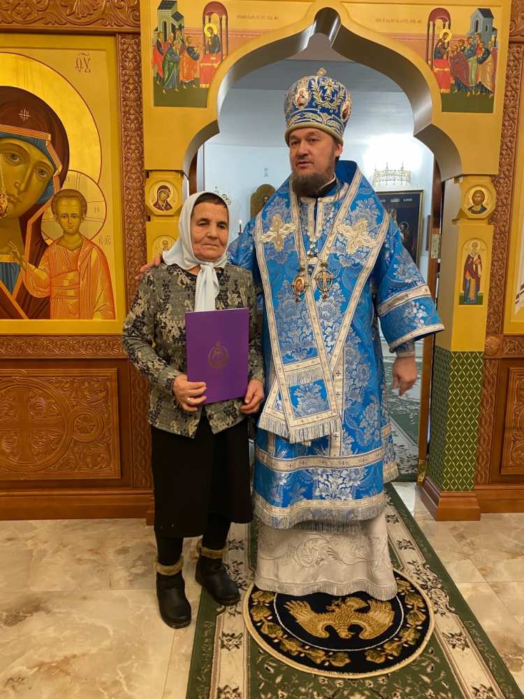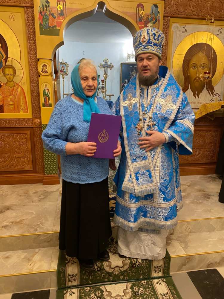 Его Преосвященство также вручил ряд наград и Архиерейских грамот активным членам Прихода. По окончании Богослужения Преосвященный Владыка по традиции обратился к верующим с архипастырской проповедью.