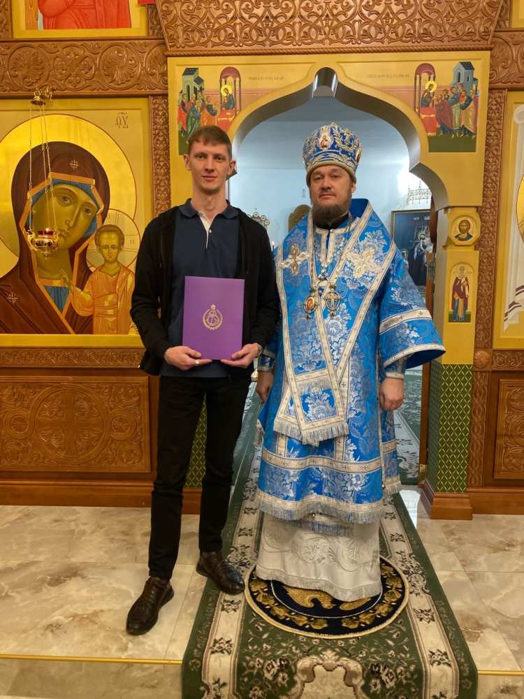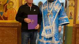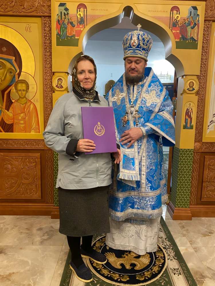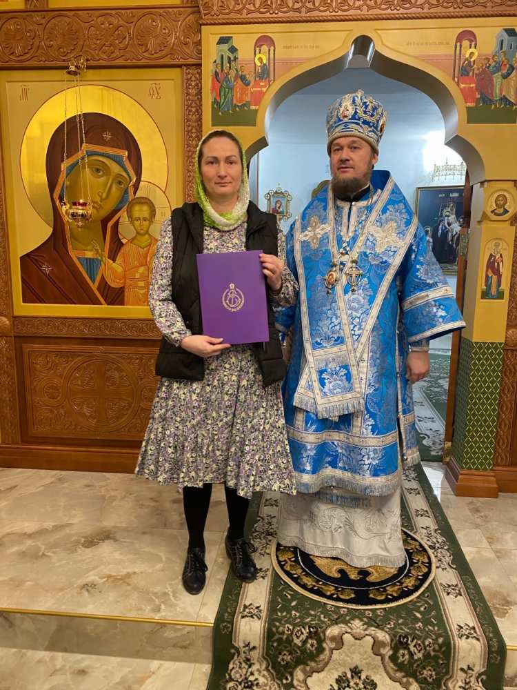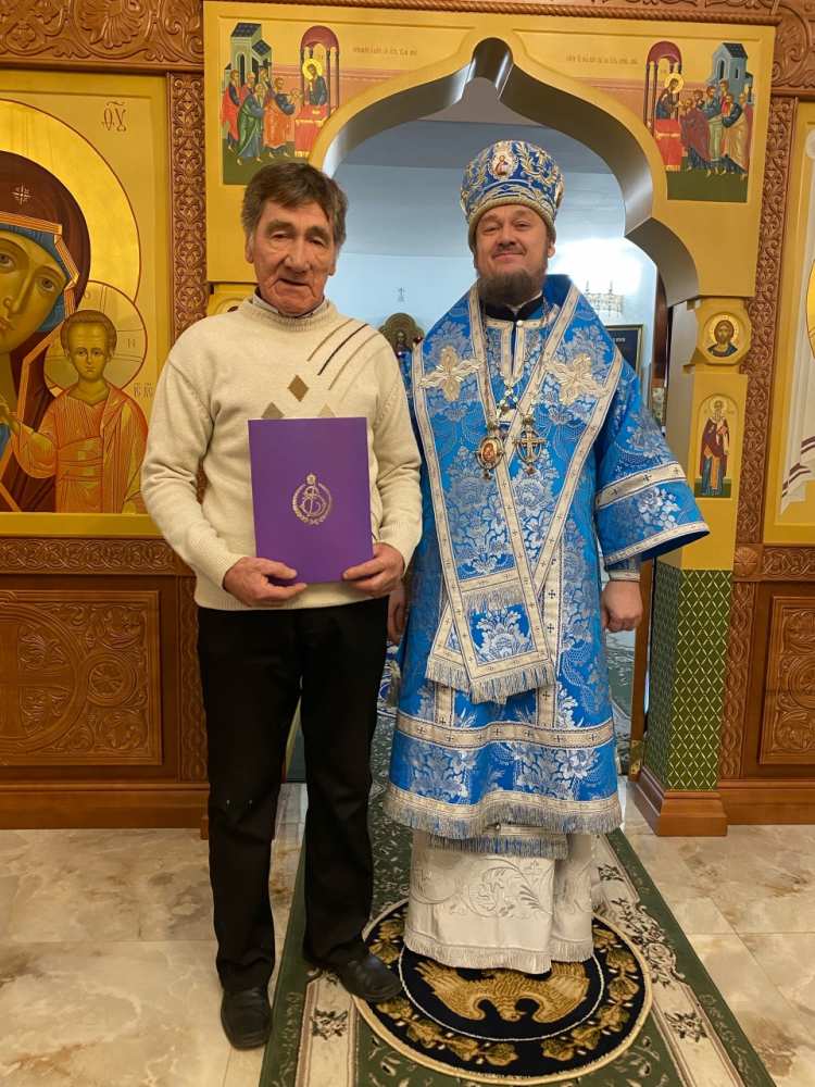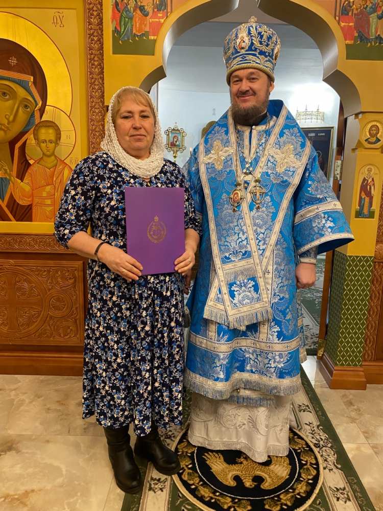 Его Преосвященство также вручил ряд наград и Архиерейских грамот активным членам Прихода. По окончании Богослужения Преосвященный Владыка по традиции обратился к верующим с архипастырской проповедью.