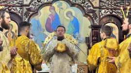 Его Преосвященству сослужило духовенство храма.