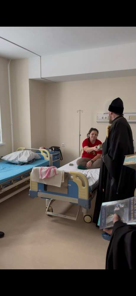 8 января 2026 года Преосвященный Владыка Диодор в сопровождении секретаря Епархиального управления Мелекесской епархии иеромонаха Прокла (Бойко) посетили пациентов в Хирургическом корпусе ФГБУ г. Димитровграда.