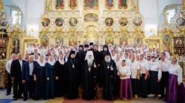 Владыка митрополит поприветствовал и поздравил участников хоровых коллективов, отметив, что все они показали достаточно высокий уровень и поют грамотно, чисто, профессионально.