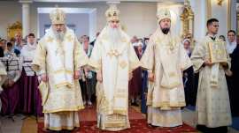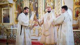 Торжественное соборное архиерейское богослужение в Спасо-Вознесенском кафедральном соборе г. Ульяновска в день архиерейской хиротонии Его Высокопреосвященства митрополита Симбирского и Новоспасского Лонгина