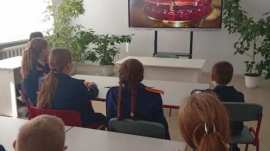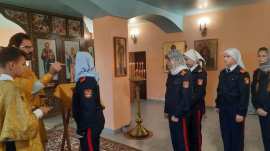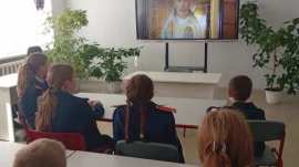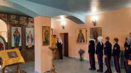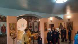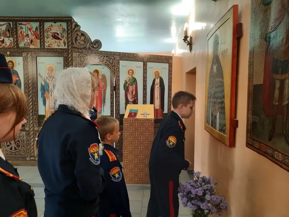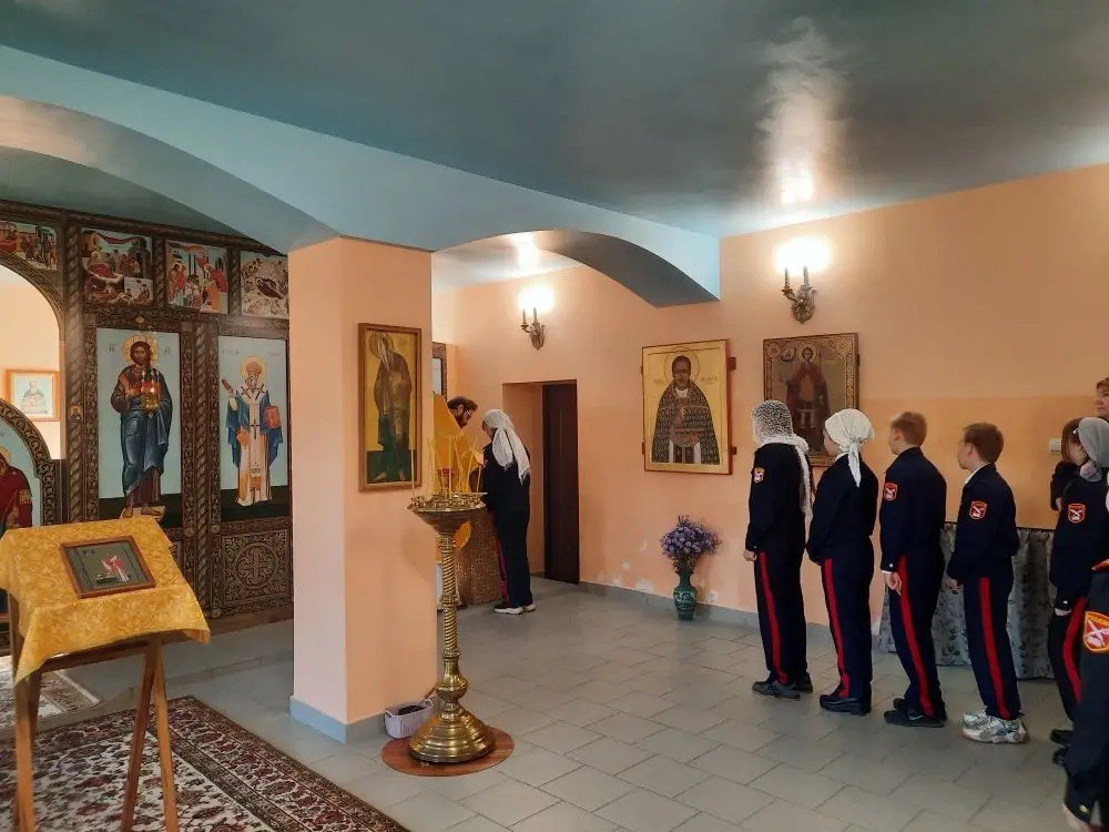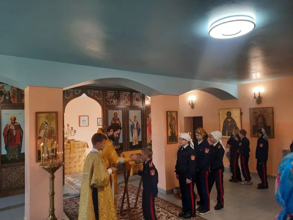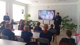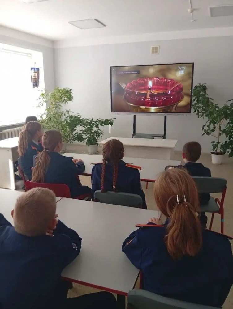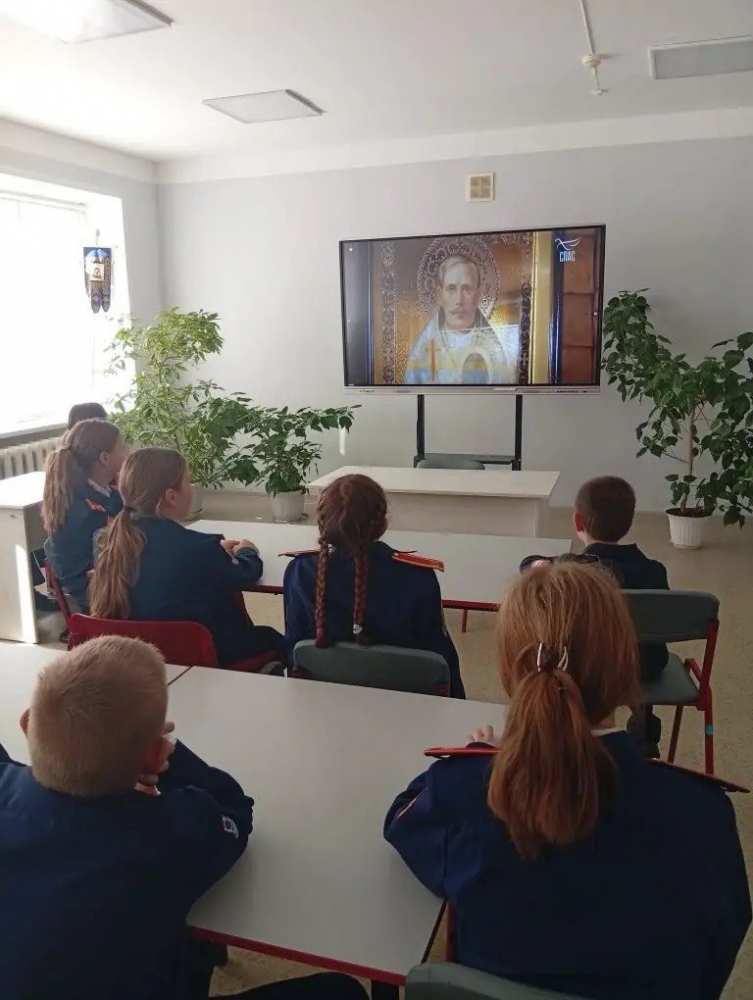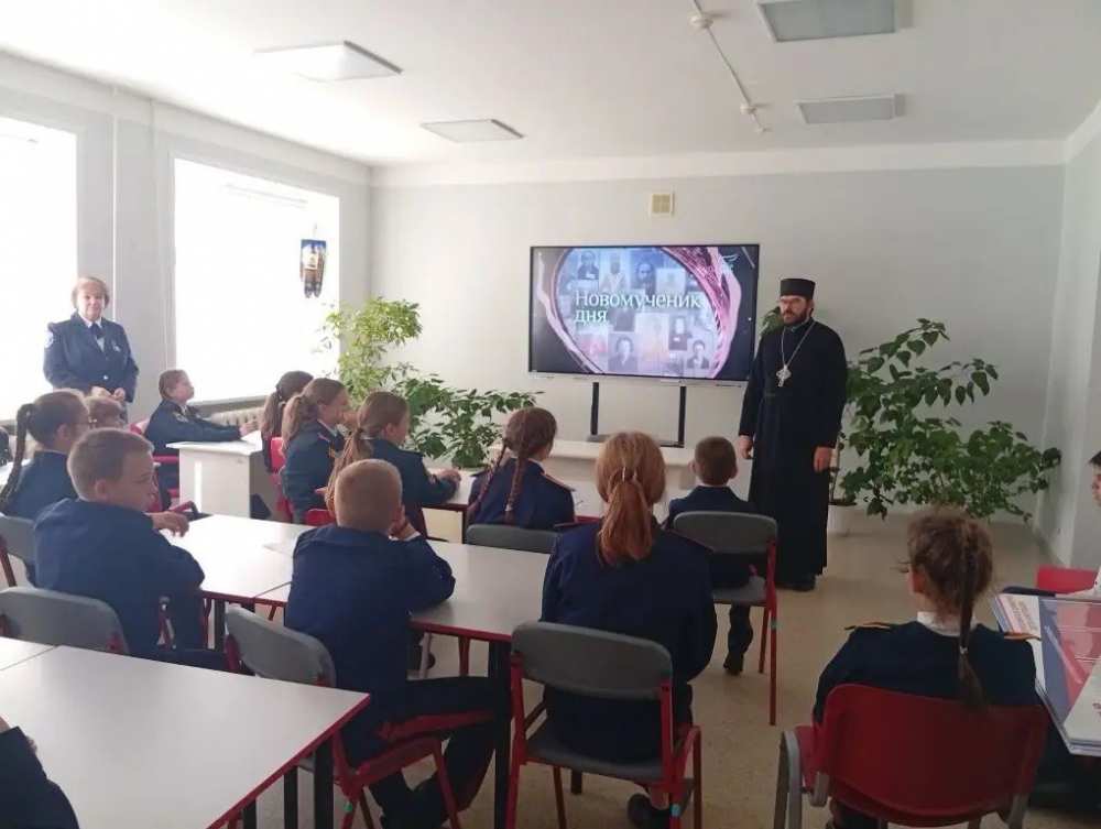 После службы кадеты посмотрели фильм об исповедническом подвиге священномученика Александра, а затем прошла беседа с директором школы Аваковой Еленой Анатольевной и протоиереем Олегом Беляевым, который рассказал ученикам о значении православного исповедничества.