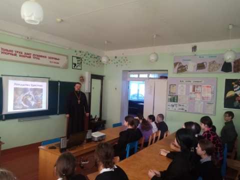 22 января 2025 года в селе Петровское (филиале Богдашкинской средней школы) настоятель храма Рождества Пресвятой Богородицы с. Архангельское протоиерей Евгений Панфилов провел беседы в 2-9 классах, посвященные Рождеству Христову.