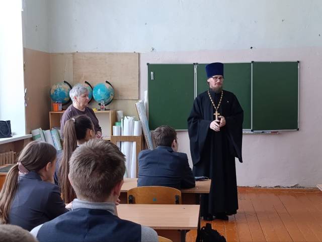 12 февраля 2026 года настоятель храма блаженного Андрея Симбирского Чудотворца п. Силикатный протоиерей Александр Титов провел беседу с учениками 10 класса на тему: Сретение Господне: личная встреча человека с Богом и выбор жизненного пути.