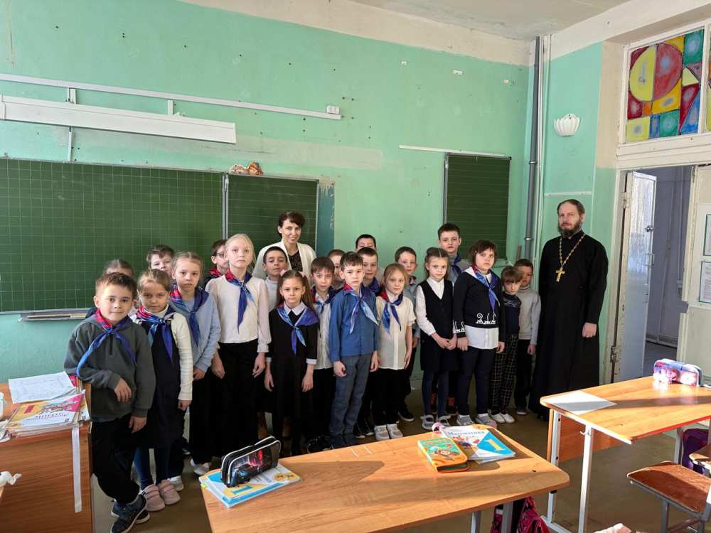 7 февраля 2025 года, клирик Свято-Георгиевского храма иерей Вячеслав Еремеев посетил СОШ №23 г.Димитровграда.