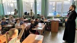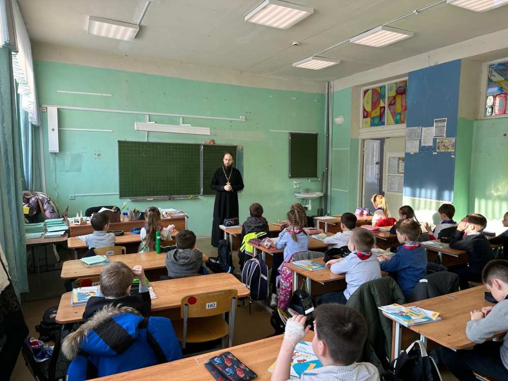 Отец Вячеслав провёл духовную беседу со школьниками младших классов о православной вере и заповедях Божиих и ответил на вопросы ребят.
