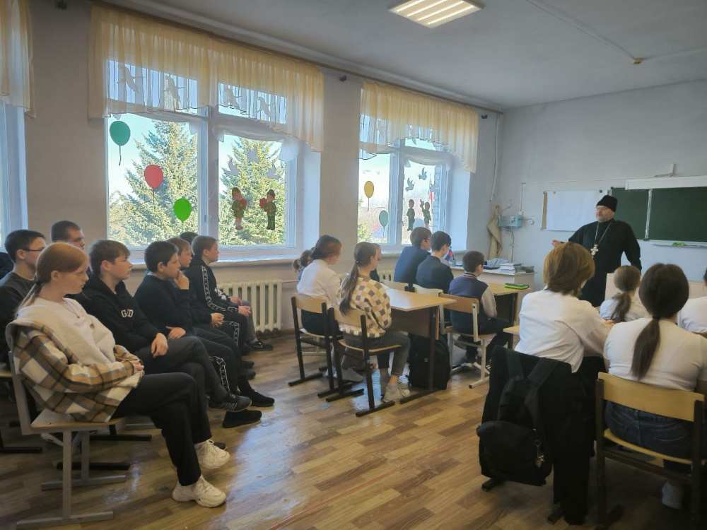 17 апреля 2025 года настоятель Свято-Введенского храма р.п. Тереньга протоиерей Александр Чеботарёв провел беседу с учениками Тумкинского ОШ.