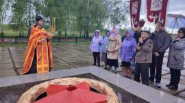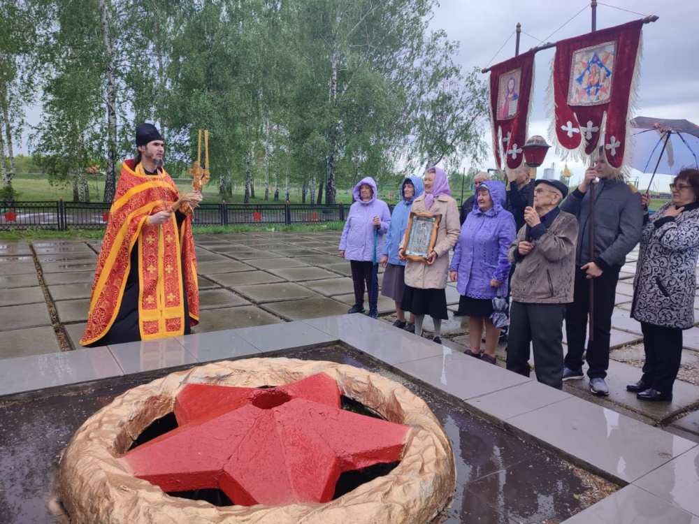 В молебне участвовали педагогический состав и ученики Озерской средней школы. По окончании молебен о. Евгений сказал проповедь о значении Победы для потомков.