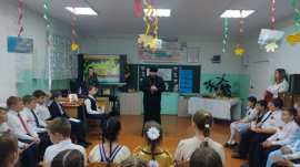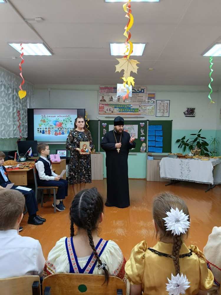 1 ноября 2025 года в рамках празднования Дня народного единства протоиерей Алексий Исаев посетил открытое занятие в 4 классах Новомалыклинской начальной школы.