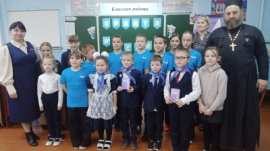 Отец Афанасий поздравил новопосвящённых «орлят» с их первыми шагами во взрослой жизнь. Все дети начальной школы получили сладкий подарок и благословения на дальнейший путь по дороге жизни.