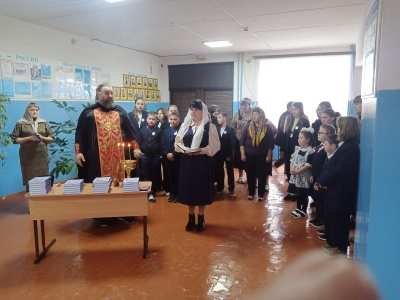 Батюшка отслужил молебен, освятил здания школы. Каждый педагог и школьник получили в подарок «Книгу о молитве - начале духовной жизни христианина».