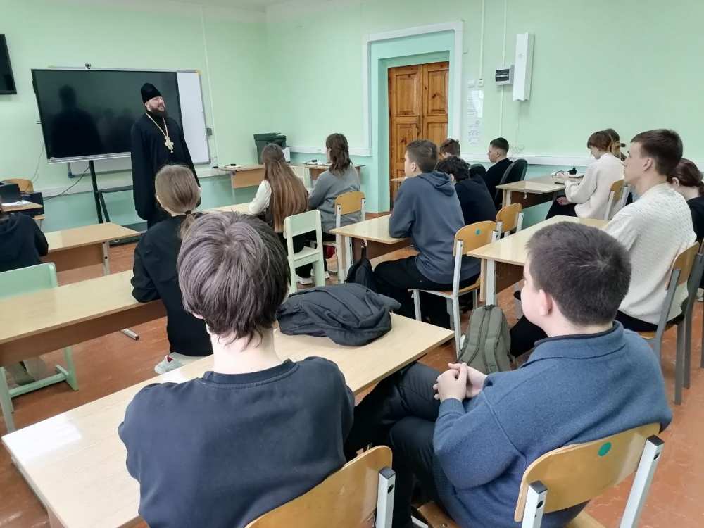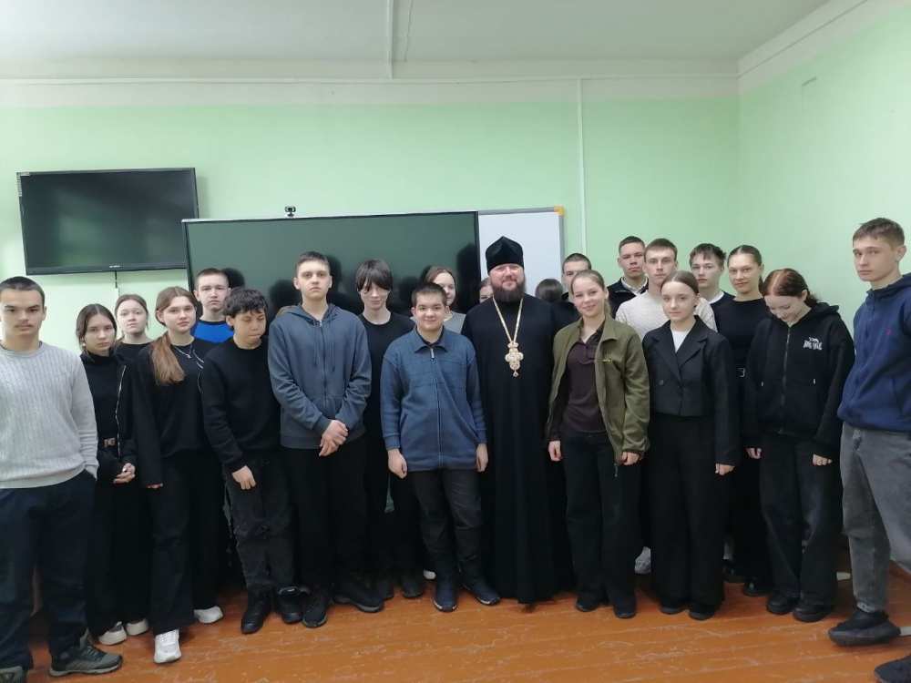 13 февраля 2026 года в средней общеобразовательной школе р.п. Красный Гуляй состоялась встреча настоятеля храма святой блаженной Матроны Московской игумена Александра (Ионова) с учащимися 10-11 классов, посвященное празднику Сретения Господня и дню Православной молодежи.