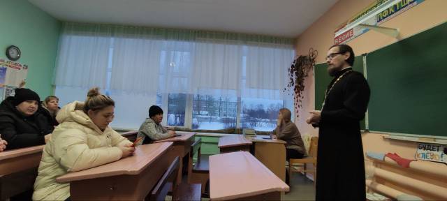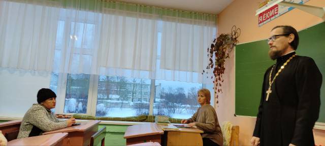На собрании выступил настоятель храм в честь блаженного Андрея Симбирского п. Силикатный протоиерей Александр Титов. Он рассказал о предмете и призвал всех родителей сделать правильный выбор в для формирования правильного мировоззрения у детей выбрав предмет Основы Православной культуры.