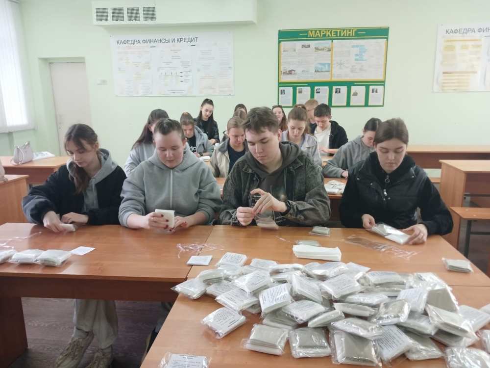 14 мая 2025 года сотрудник приходской социальной службы Свято-Татианинского храма "От сердца к сердцу" Елена Макарова со студентами Ульяновского государственного аграрного университета имени П. А. Столыпина изготовили 140 комплектов сухого армейского душа для воинов СВО.