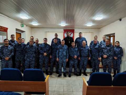 15 января 2025 года в Димитровградском Отделе вневедомственной охраны, который является филиалом Федерального государственного казенного учреждения «Управление вневедомственной охраны войск национальной гвардии Российской Федерации», состоялась встреча клирика Спасо-Преображенского кафедрального собора иерея Виктора Венедиктова с офицерами и личным составом гарнизона.