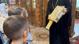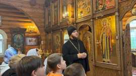 Экскурсию для ребят провел настоятель храма иеромонах Нектарий (Куликов).
