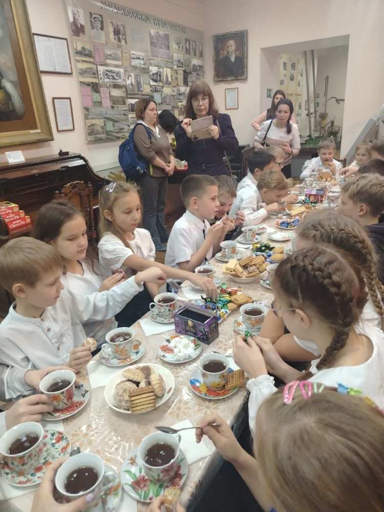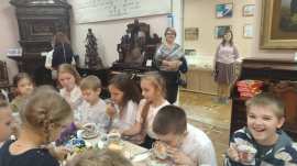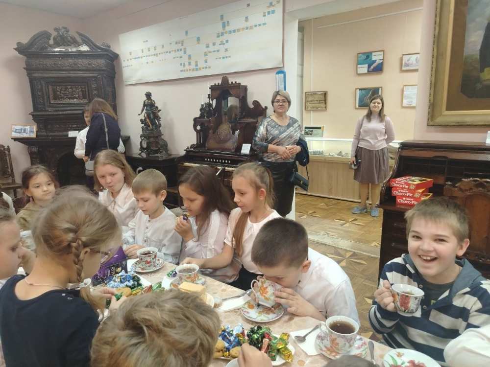 Затем ребята были приглашены в купеческий зал, где для них было организовано чаепитие совсем по-купечески! Напившись чаю, дети побывали в следующем экспозиционном зале "Природа" и стали участниками интерактивной игры.
