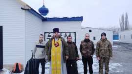 «Завтра утром мы отслужим Литургию и направимся в родные края. Благодаря общим усилим мы помолились в новом храме, который на наших глазах превратился из молитвенной комнаты в часовню, а из часовни в настоящий храм. Отслужена первая Литургия, а также были совершены Таинства Крещения и Причастия. Солдаты получили слова утешения в своем нелегком служении.