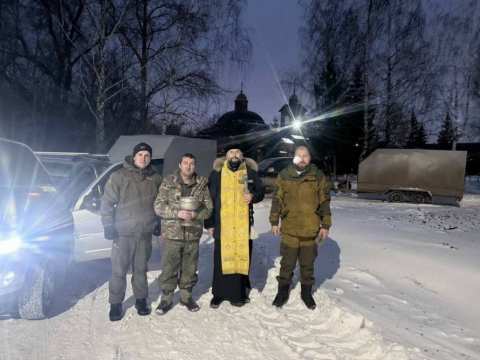 По благословению Преосвященного Диодора епископа Мелекесского и Чердаклинского руководитель Епархиального отдела по взаимодействию с Вооруженными Силами и правоохранительными органами иеромонах Иона (Черкасов) перед отправкой автомашины обратился к присутствующим с благодарностью и напутственным словом, затем, после совместной молитвы, благословил сопровождающих и освятил гуманитарный груз. В составе гуманитарного конвоя отправились в поездку лидер молодежного патриотического братства "Пересвет" Сергей Гурьянов и член братства Дмитрий Мазанов.